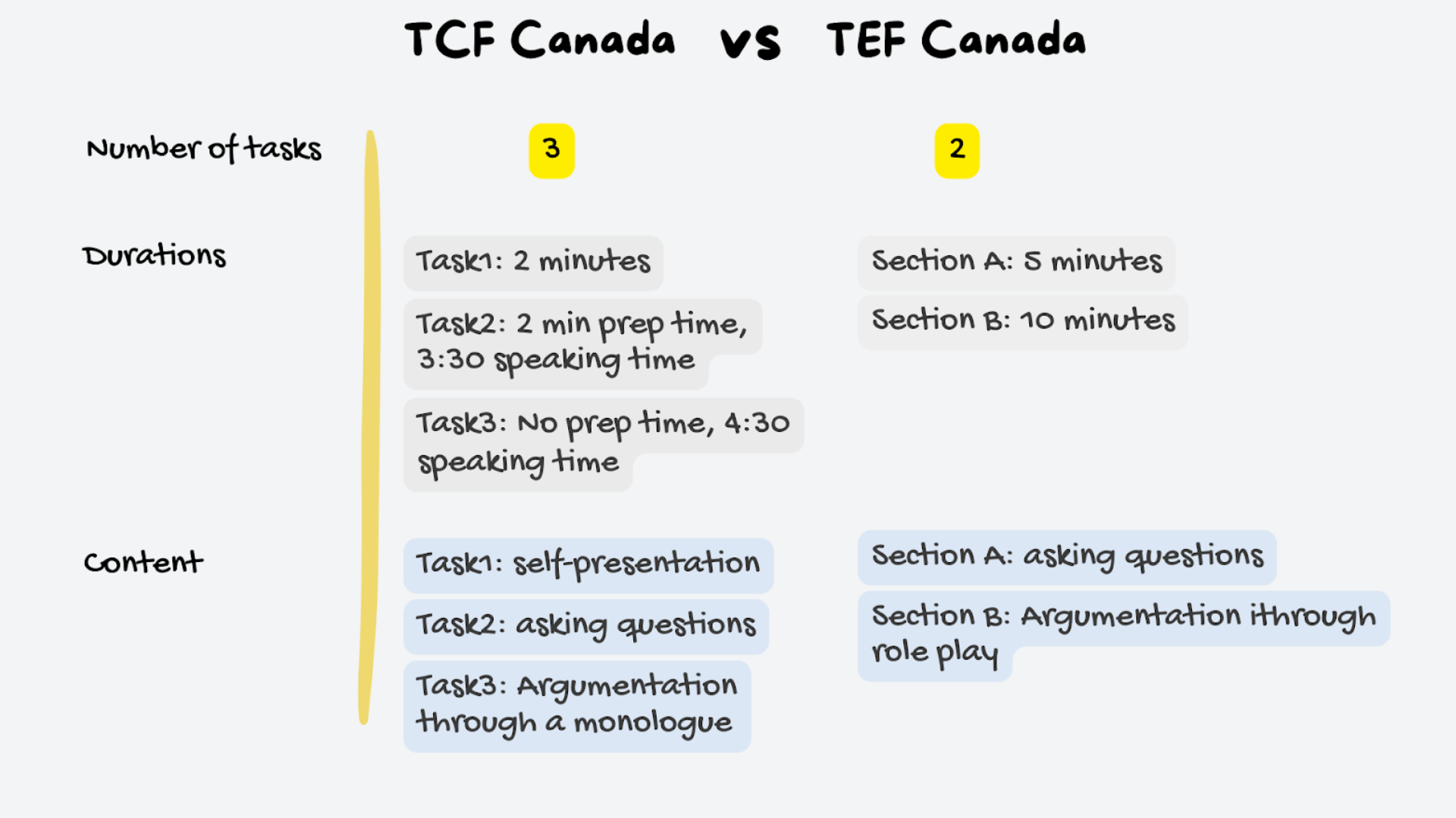 When comparing the TCF Canada and TEF Canada speaking sections, many students wonder which one is easier. To help you decide, let’s first break down the content of each test.